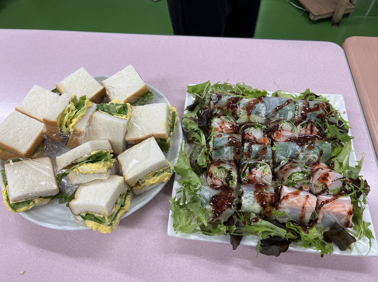 ヤンニョムチキンやサンドイッチ、ケーキなど、メンバーがメニューを考えて楽しく料理をしました♪